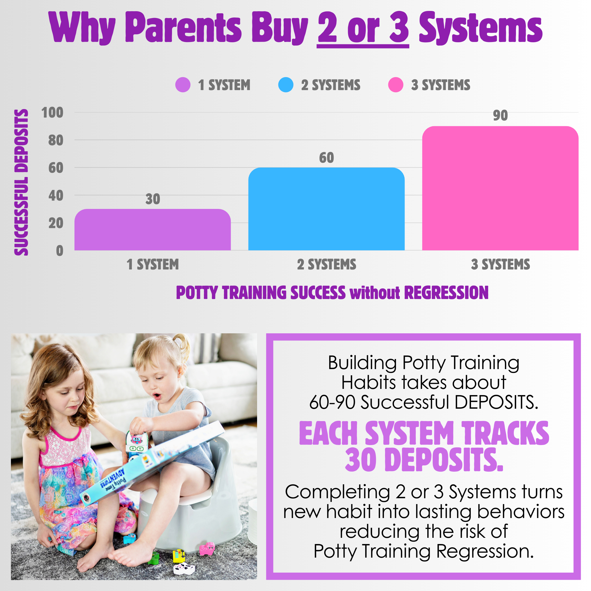 • Complete a potty punch-out with 1–3 successful deposits. Even on tough days, reward your child with a themed sticker for their activity board to keep them motivated.