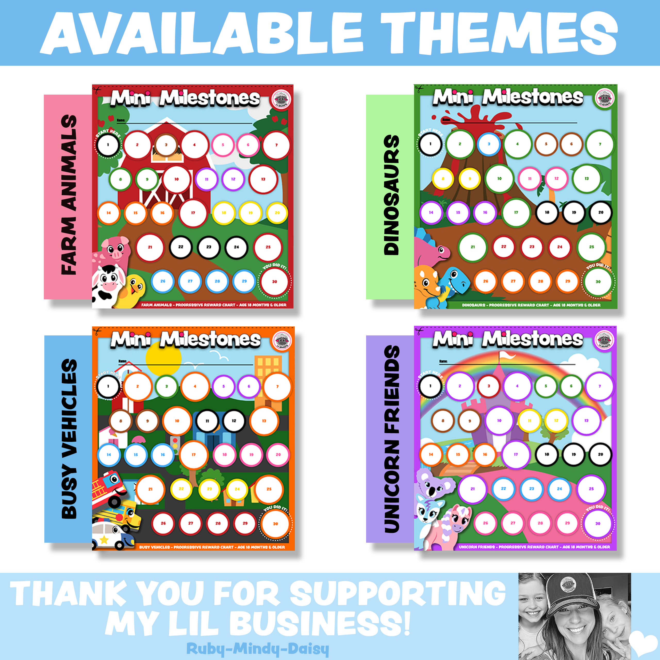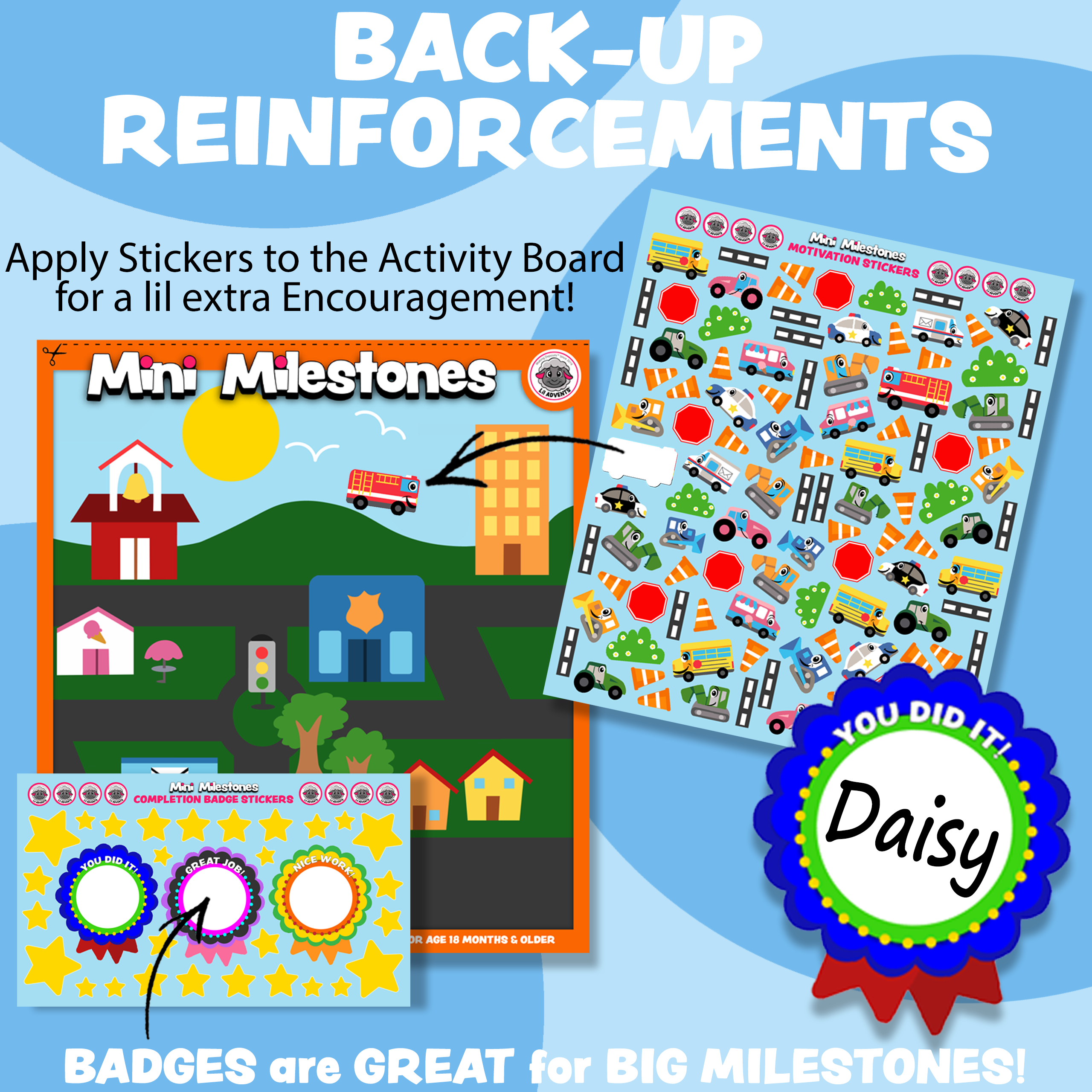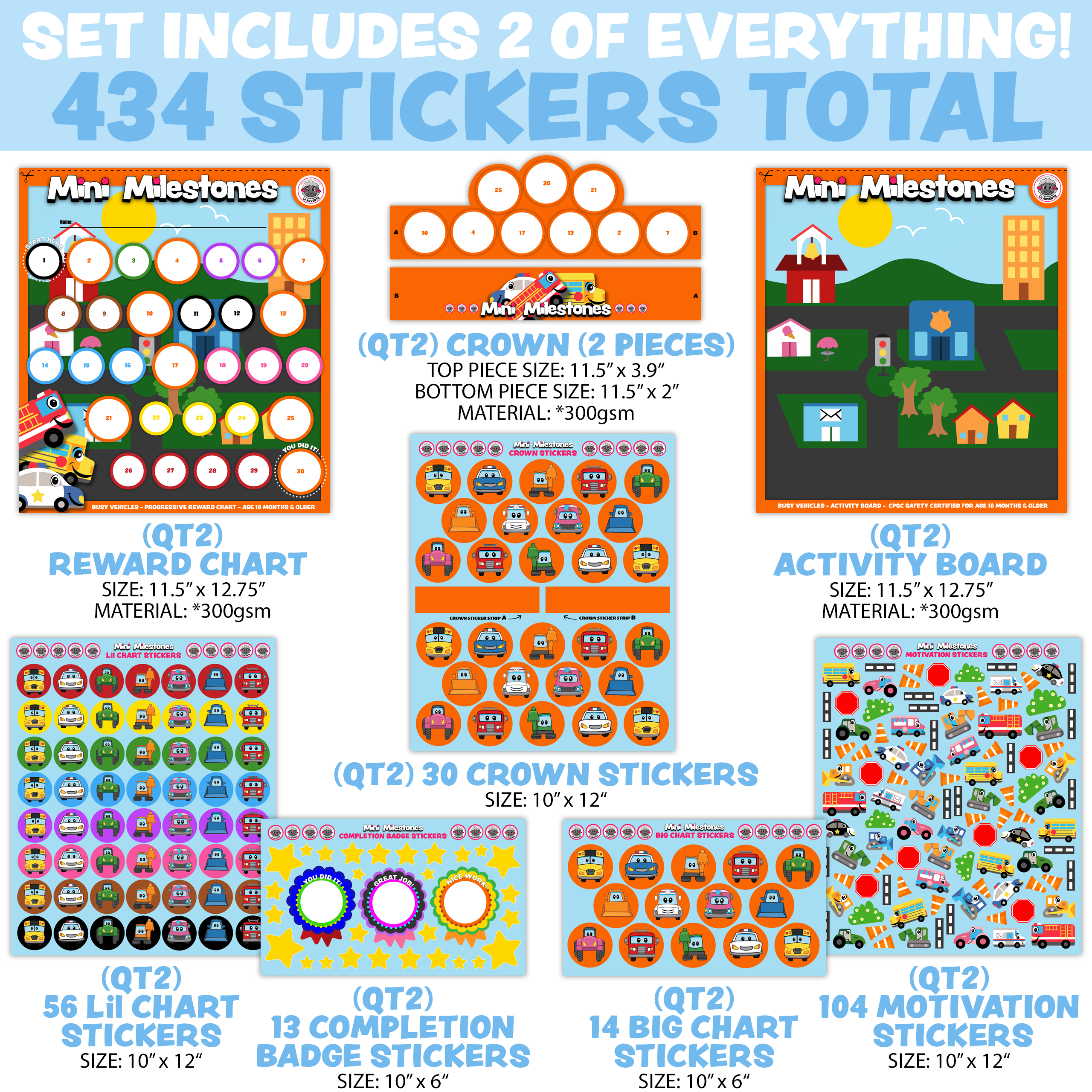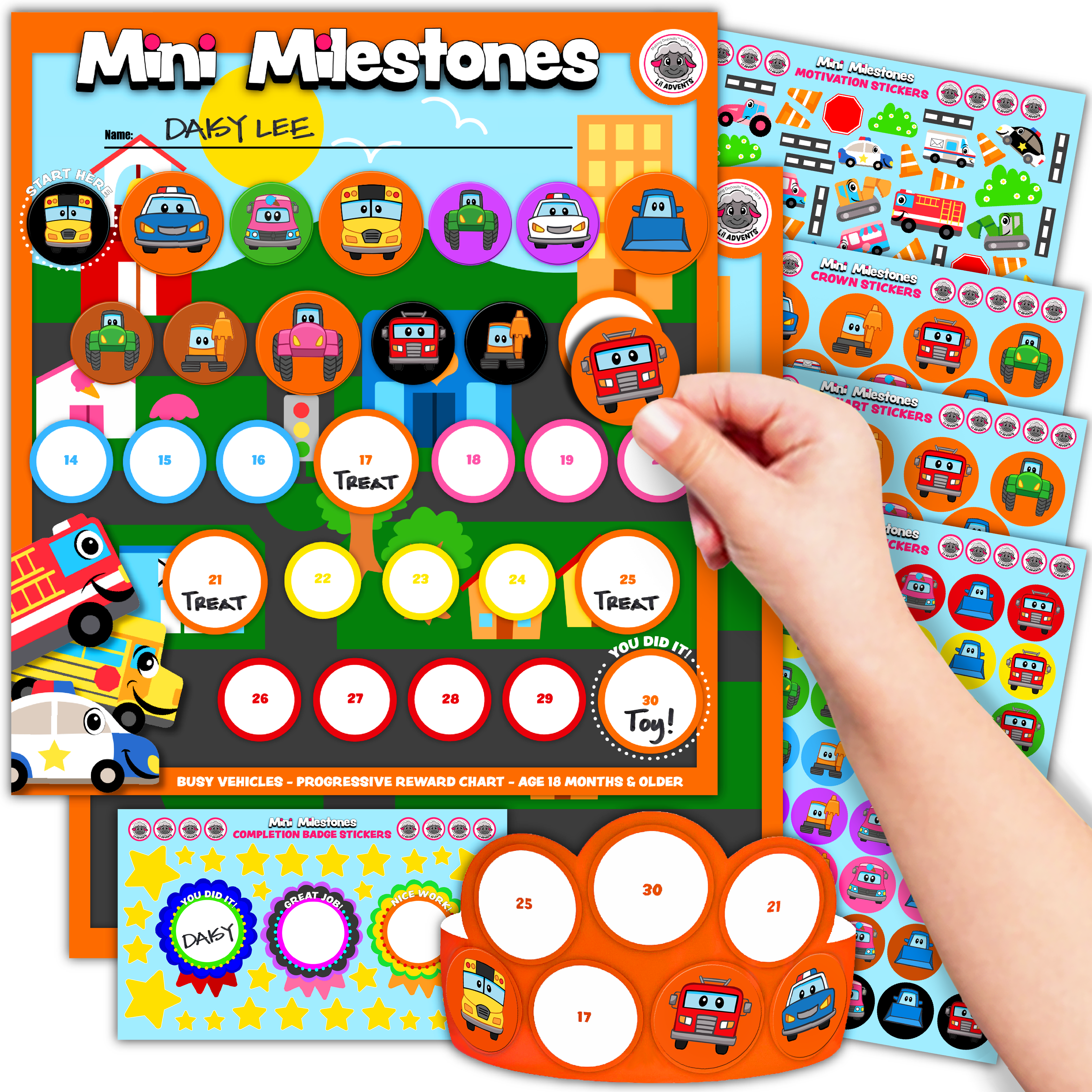 • 2x busy vehicle-themed progressive reward charts
