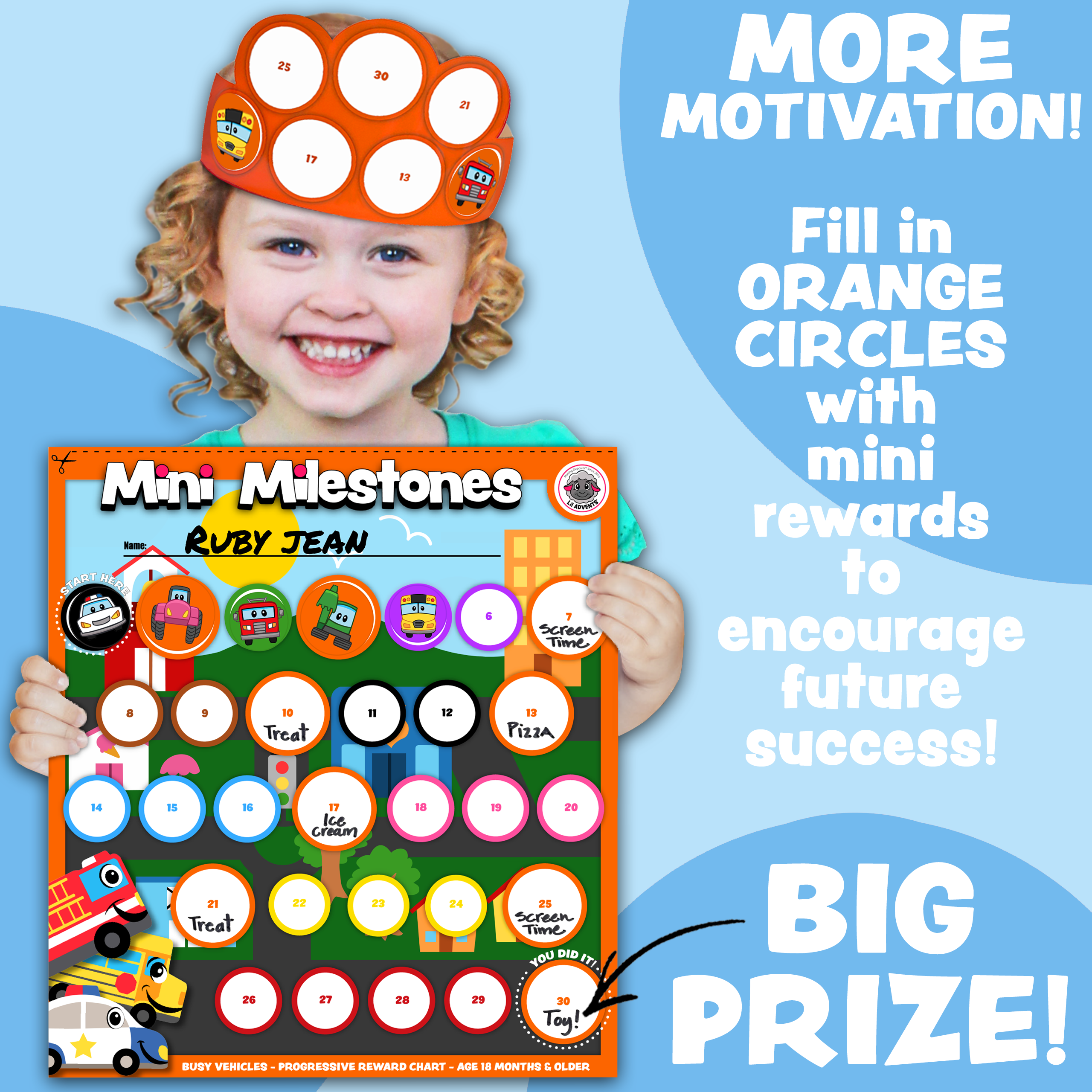 • Reward your child with an additional sticker on the crown when milestones are reached.