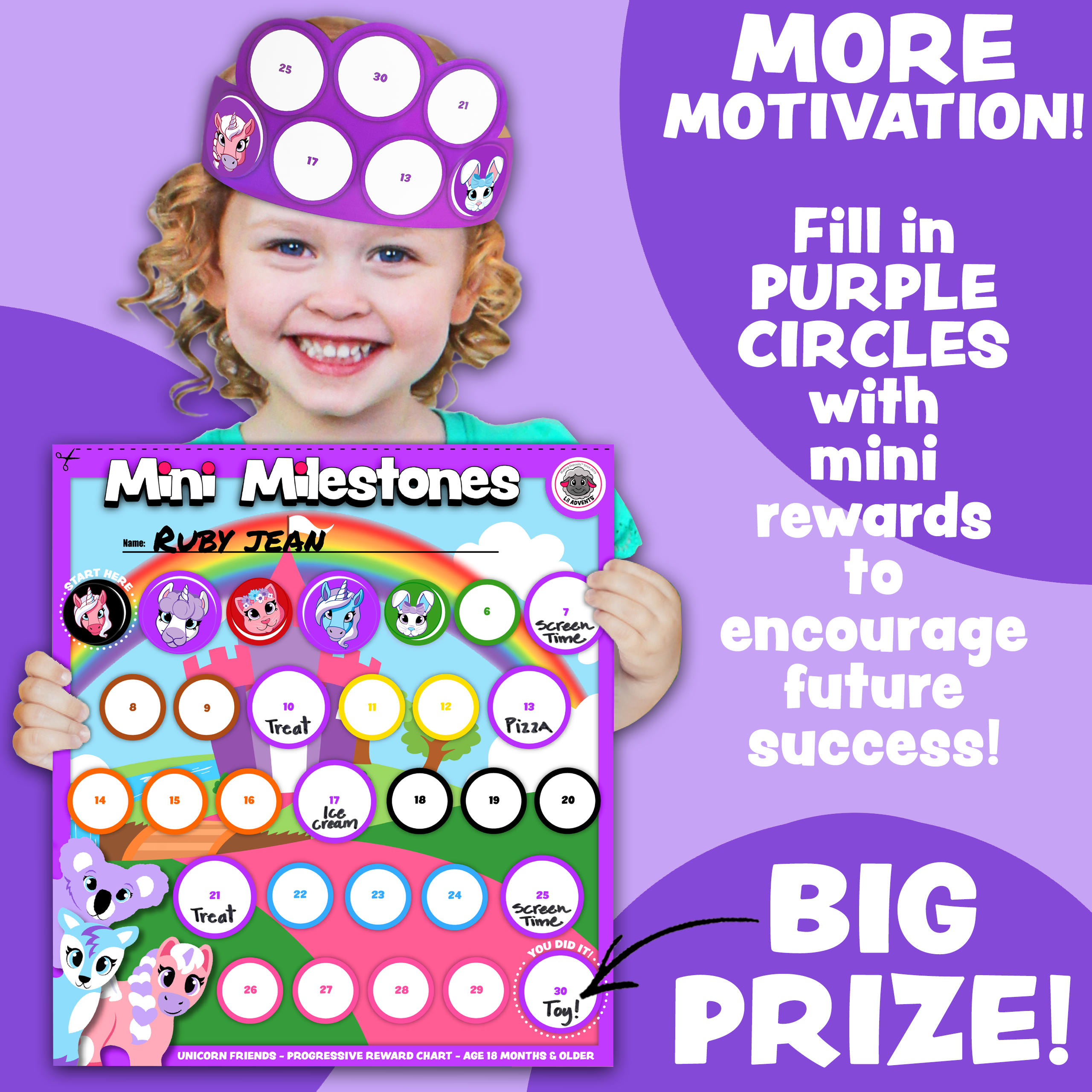 Encourage lasting habits and essential skills with the Mini Milestones Reward Chart - Unicorn Friends! This fun, engaging system helps your child learn behaviors like brushing teeth, eating vegetables, following rules, and more. Featuring a vibrant Unicorn theme, this chart makes positive reinforcement and milestone tracking both exciting and rewarding.