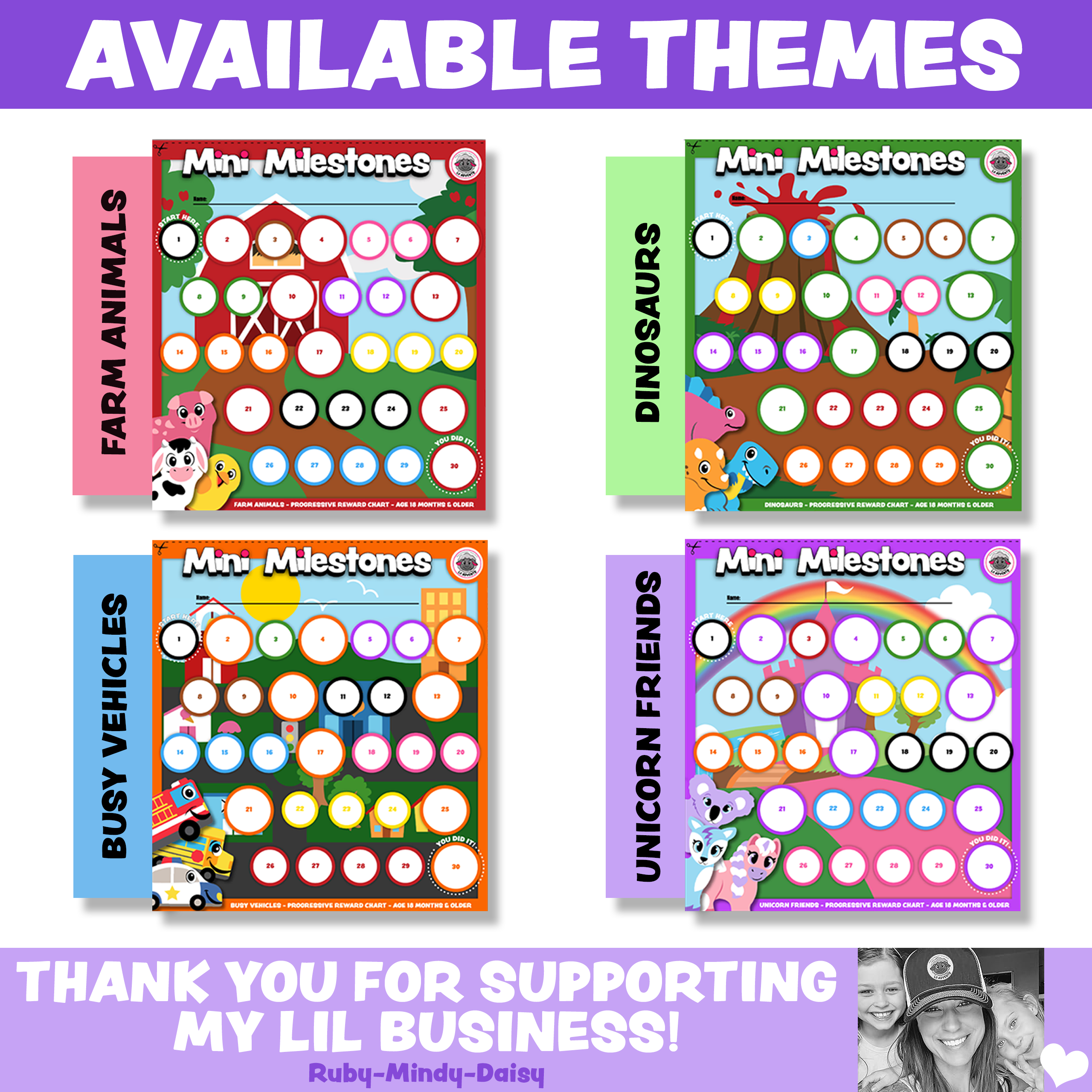 Mini Milestones Behavior Reward Chore Chart - Unicorn Friends - Set of 2
