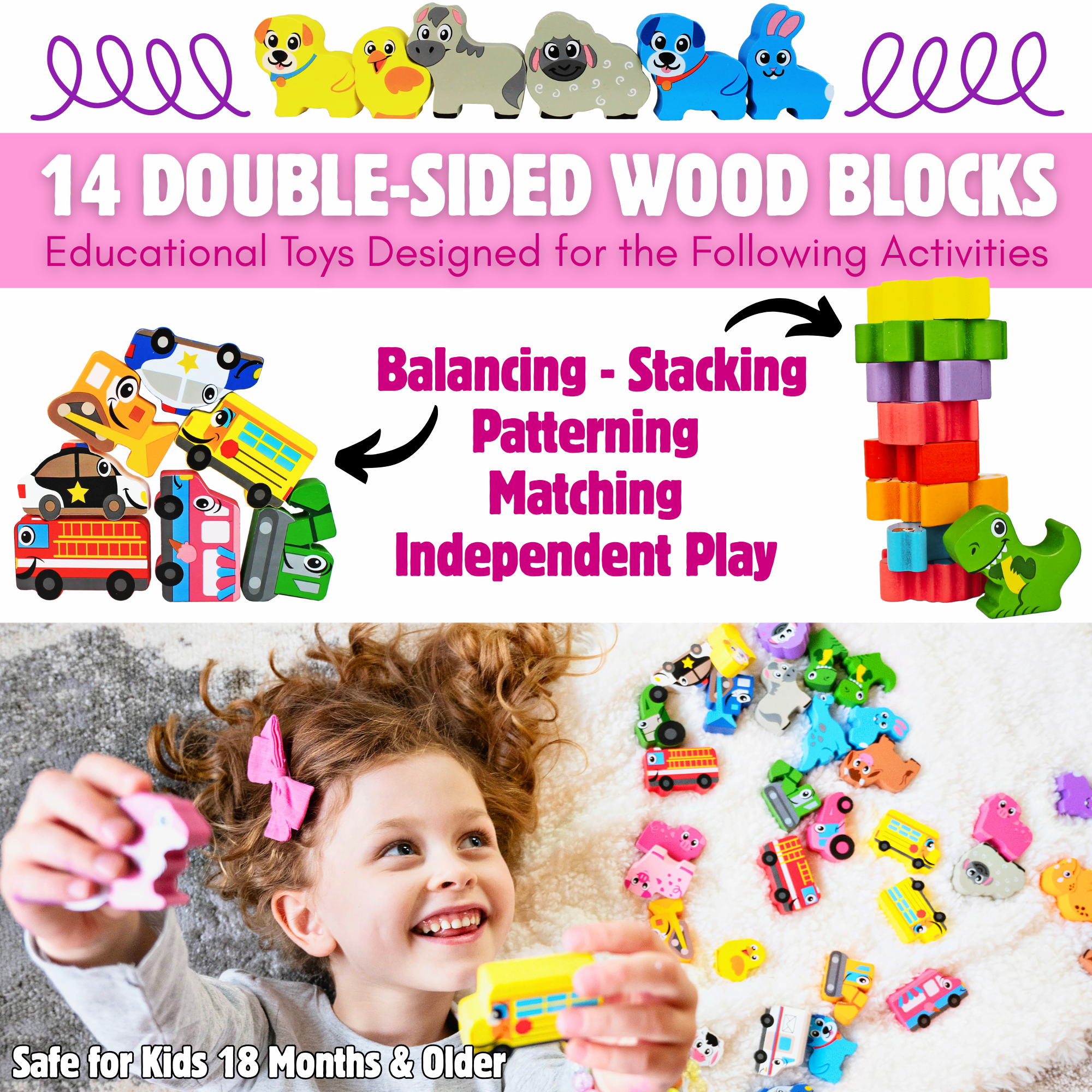 - 14 WOOD BALANCING BLOCK TOYS – This wooden Farm Animal play set goes beyond potty training. Its educational use is designed for for color recognition, counting skills, sorting, matching & imaginative play - perfect potty training rewards for toddlers!