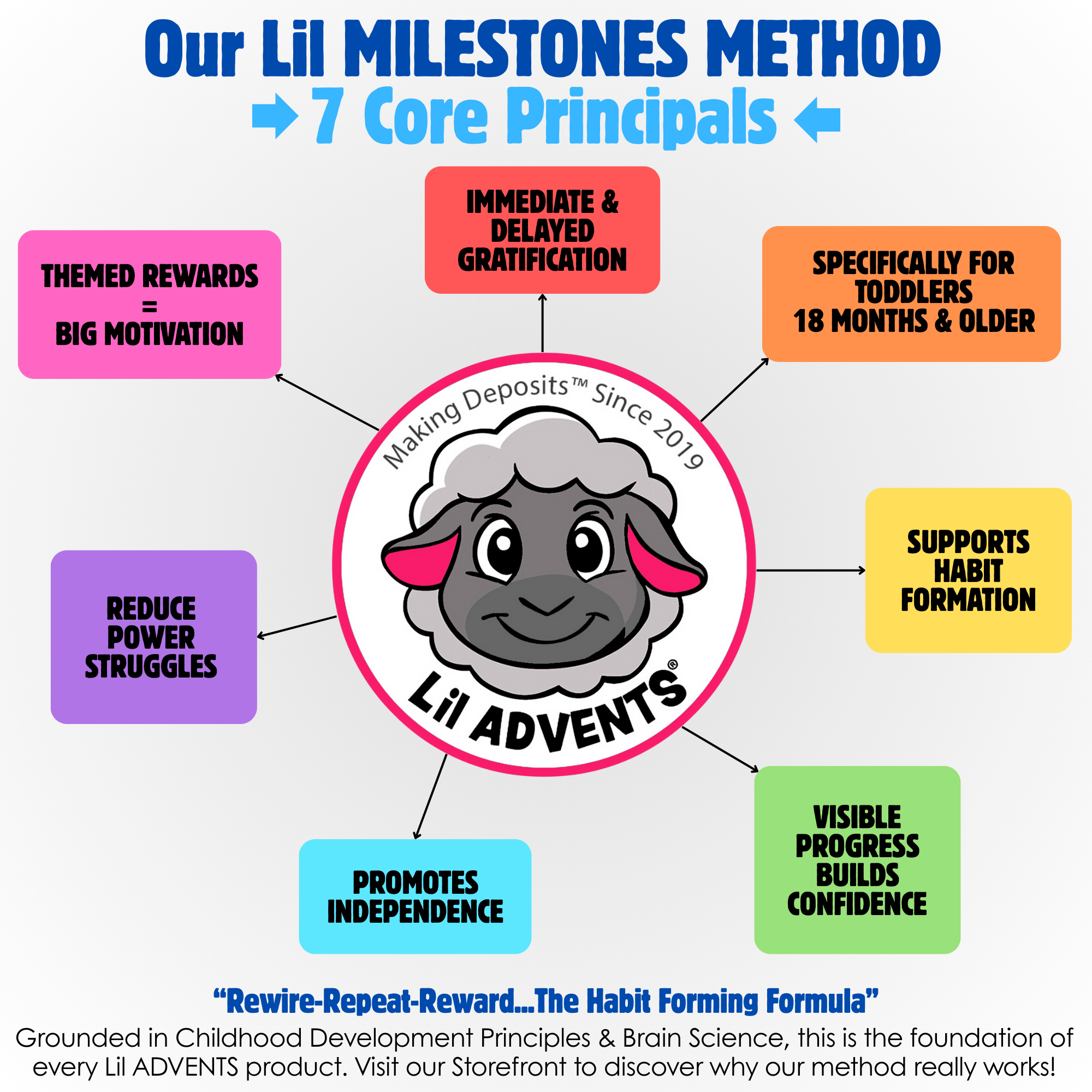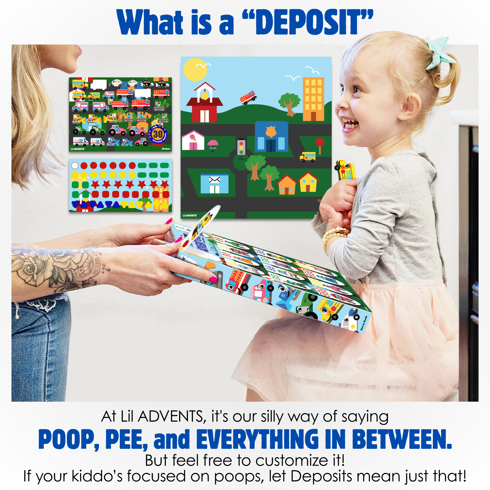 Make potty training an action-packed adventure with Potty Time ADVENTures - Busy Vehicles! Specifically designed for toddlers 18 months and up, this interactive game helps your Lil One tackle this milestone! Using an advent calendar-style chart, your child will be rewarded with stickers and hidden themed wood blocks after every successful Deposit.